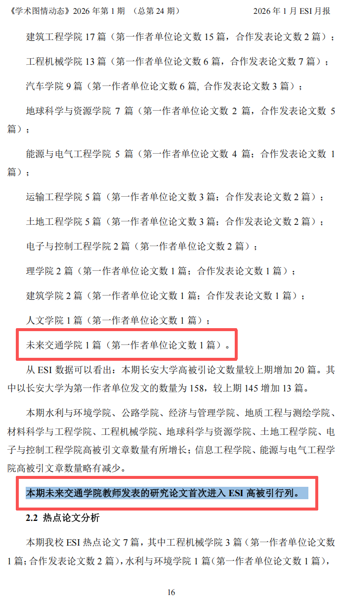 本期《学术图情动态》展示了学院在城市交通与规划学科领域具有较高的科研实力、学术影响力及国际化水平,也将进一步助力学院引进高层次人才、深化国际合作交流,推动我校交通运输工程“双一流”学科建设与创新发展。