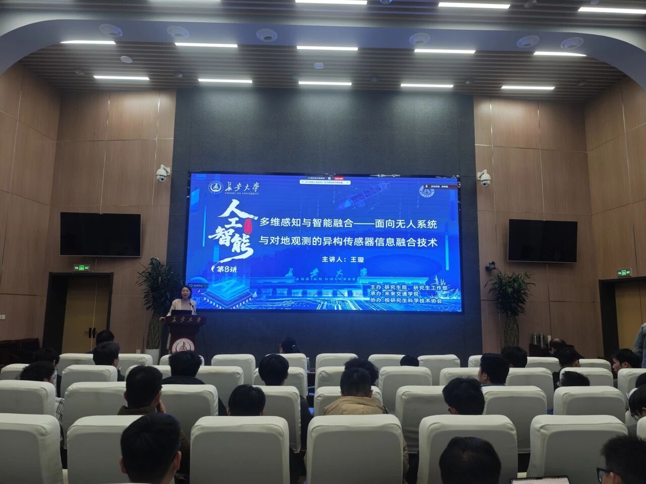 3月25日上午,由研究生院、研究生工作部主办,无码a片 承办,校研究生科学技术协会协办的“人工智能”长安大讲堂第8讲在北校区师生服务大厅第二报告厅顺利举办。西北工业大学王璇教授作了题为“多维感知与智能融合——面向无人系统与对地观测的异构传感器信息融合技术”的报告,无码a片 副院长崔华主持,相关学院共130余名师生参加讲座。