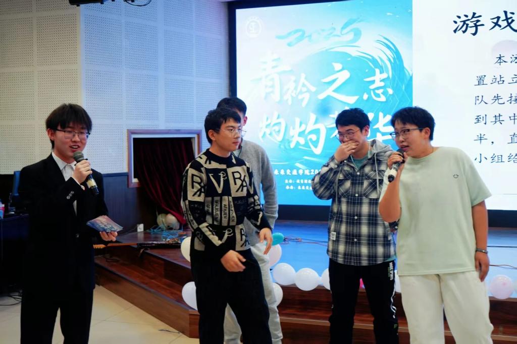 中场环节为晚会注入了温馨氛围,趣味与温情交织。飞花令成语接龙游戏中,八名同学组成两组登台竞技,成语接龙的紧张对决与超时后的趣味惩罚相映成趣,引来阵阵欢笑与热烈掌声。