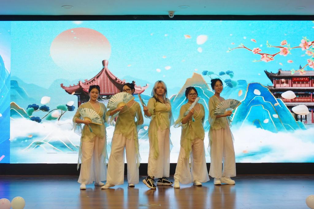 《上春山》以极具东方韵味的扇舞与柔美身段,勾勒出一幅诗意盎然的春日画卷。中外学子的默契配合,不仅展现了中华传统文化的魅力,更体现了学院国际化氛围下的文化交融。
