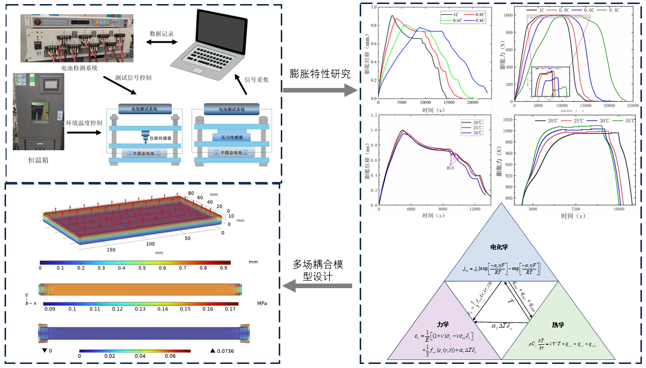 2022级本科生孟杰伦等在《汽车工程》上发表题为《半固态锂电池膨胀特性建模仿真及实验研究》的研究成果。论文以一款商用半固态电池为研究对象,建立多场耦合模型,解析电池膨胀演化规律与机理,为飞行汽车动力电池系统设计提供理论指导。该论文孟杰伦为第一作者,通讯作者为汽车学院彭俊老师。
