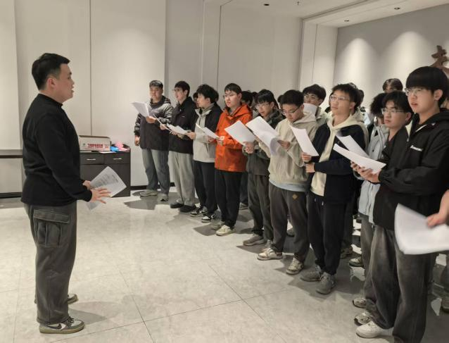 自比赛启动以来,学院高度重视、周密部署,院团委围绕诵读主题、队形编排、音频视频等环节精心筹备,有序推进分组排练与现场打磨。院学生事务部主任刘志兴、院团委书记曾晓阳以及院团委副书记范荣欣多次亲临排练现场,从朗诵技巧、情感表达到服装造型、后期制作逐一指导,为活动高质量开展保驾护航。